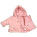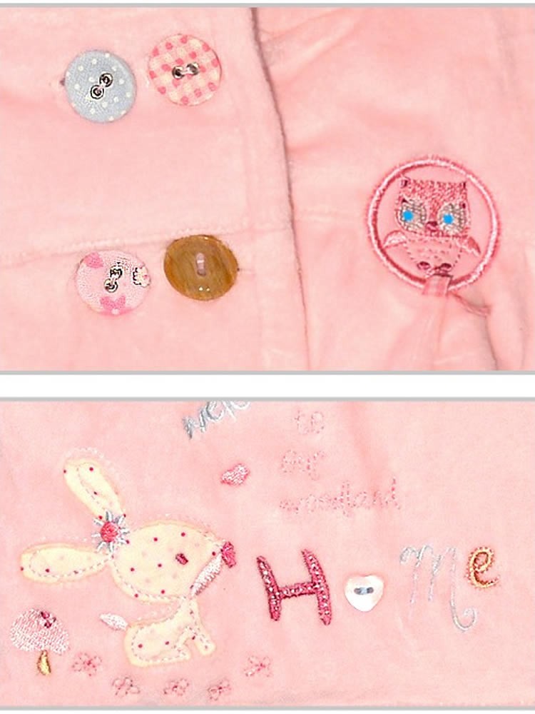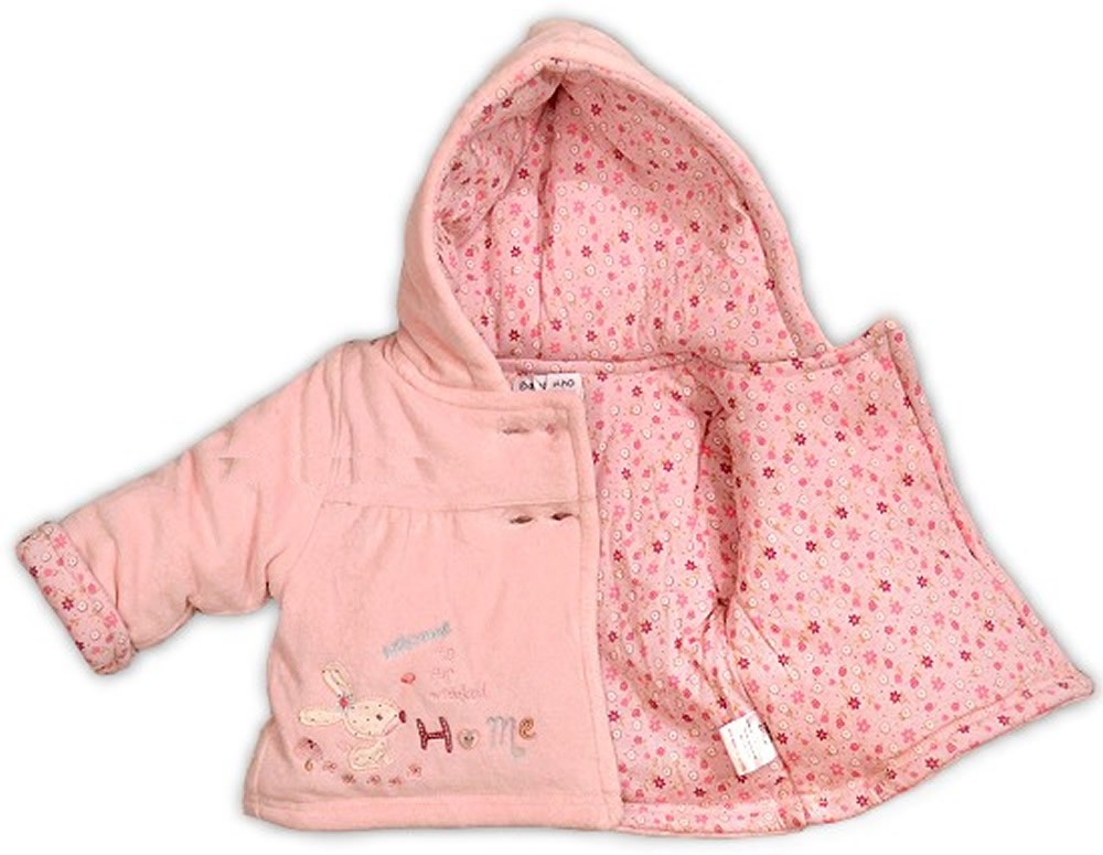 Lovely soft Babaluno Baby Girls Pink Velour Jacket in sizes Newborn to 6 months. Decorated with animal motifs and the phrase "Welcome to our Woodland home."