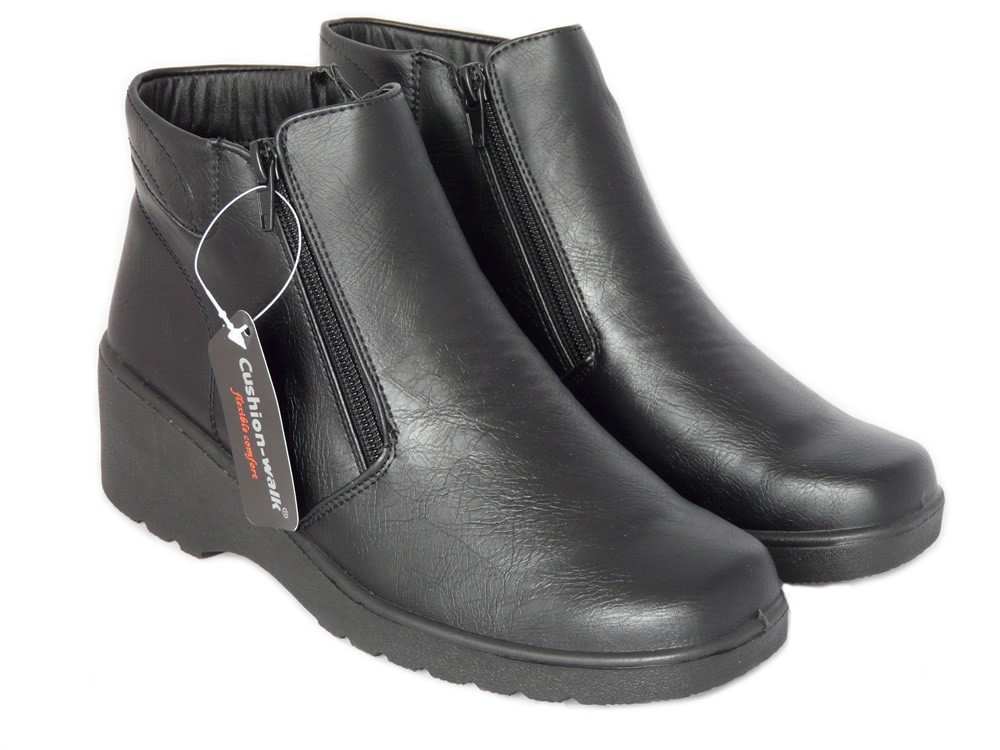 Women's 2 inch wedge heel slip-on boots by Cushion Walk. Soft, lightweight and flexible, you hardly know you've got them on your feet. All synthetic construction, fully lined with twin zip closure and chunky sole. - Reviews