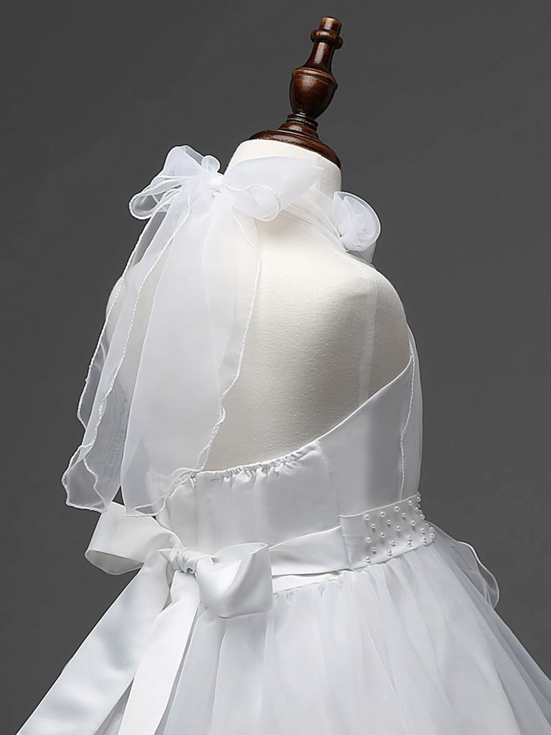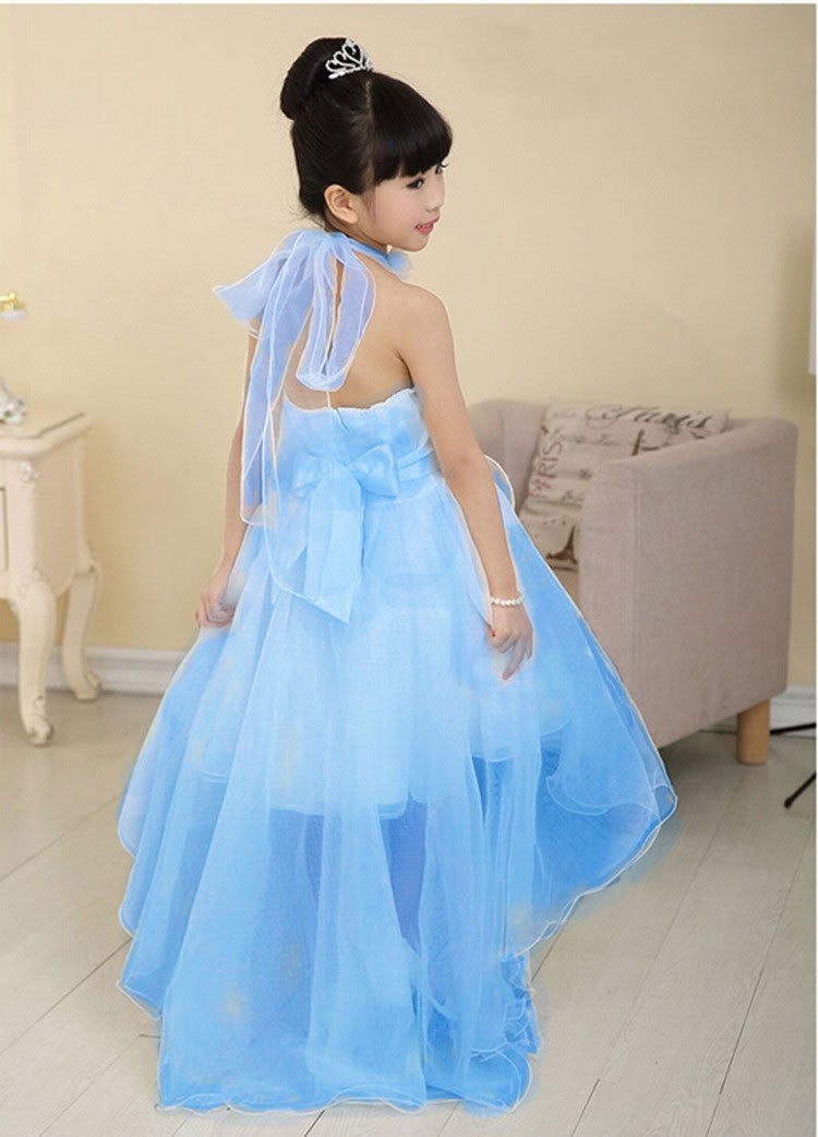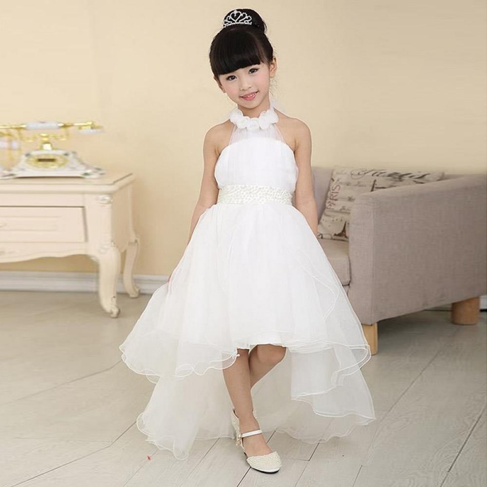 A beautiful full length girls dress with trail, suitable fo many occasions.