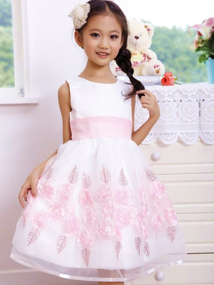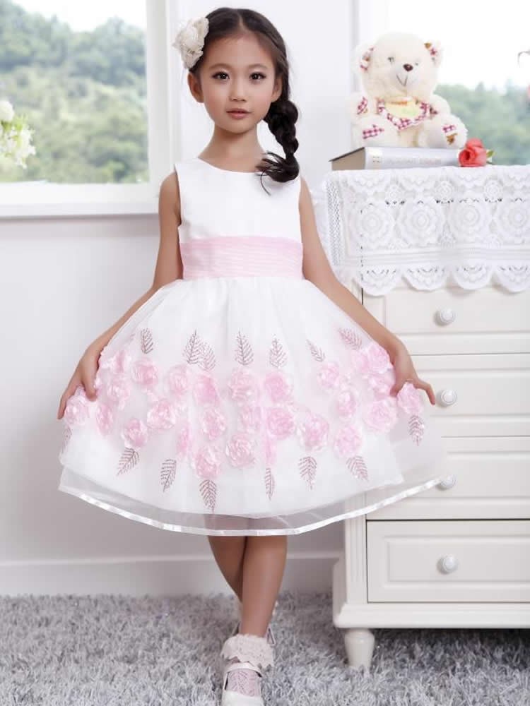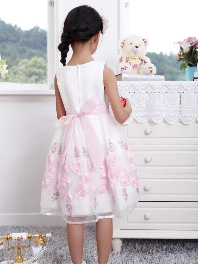 Gorgeous flower and sequin fern design with plaited mesh waist band and sash, which ties at the back for a perfect fit.