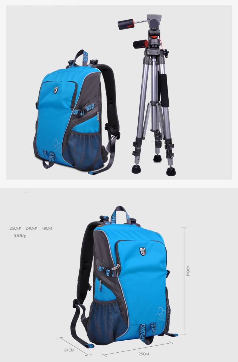 The fully adjustable interior can be easily arranged via velcro fastenings to accomodate a wide variety of DSLR bodies, lenses and accessories. The bag also features adjustable exterior straps and mesh pockets on either side to attach and carry a tripod or two.