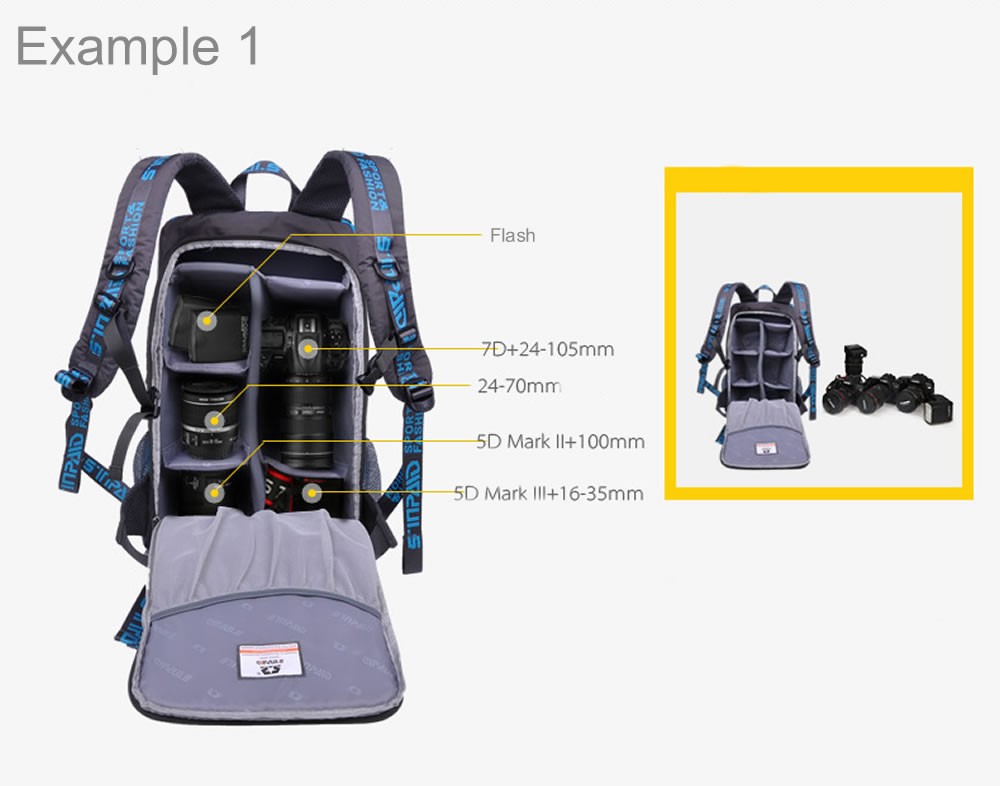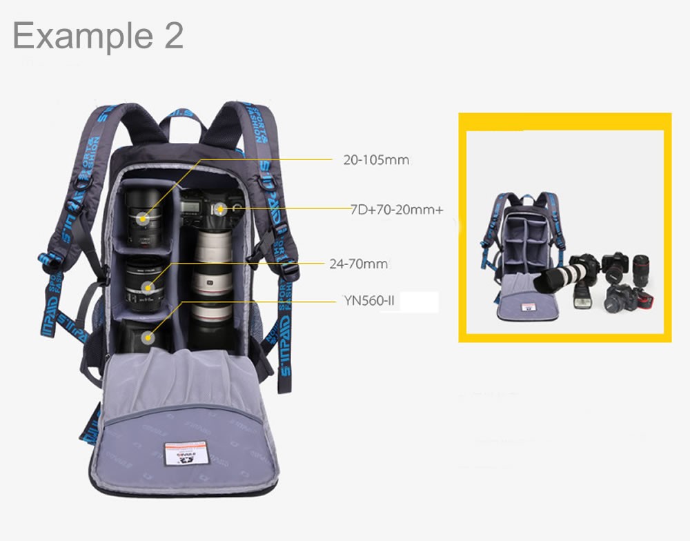 DSLR and Laptop Backpack designed to hold your photo and editing tools while on the move. The backpack features a customisable interior which can hold and protect a large number of items for example 3 SLR camera bodies, 3 - 4 lenses, Flash, and additional smaller accessories. See the example photos for more details.