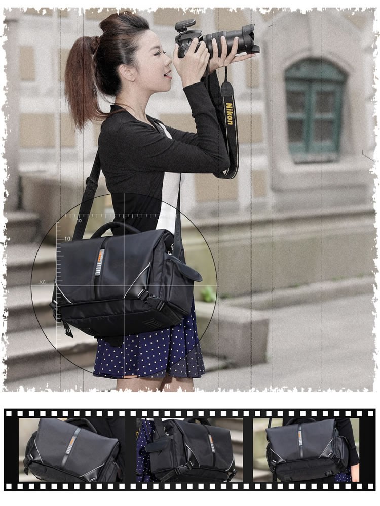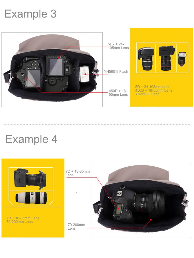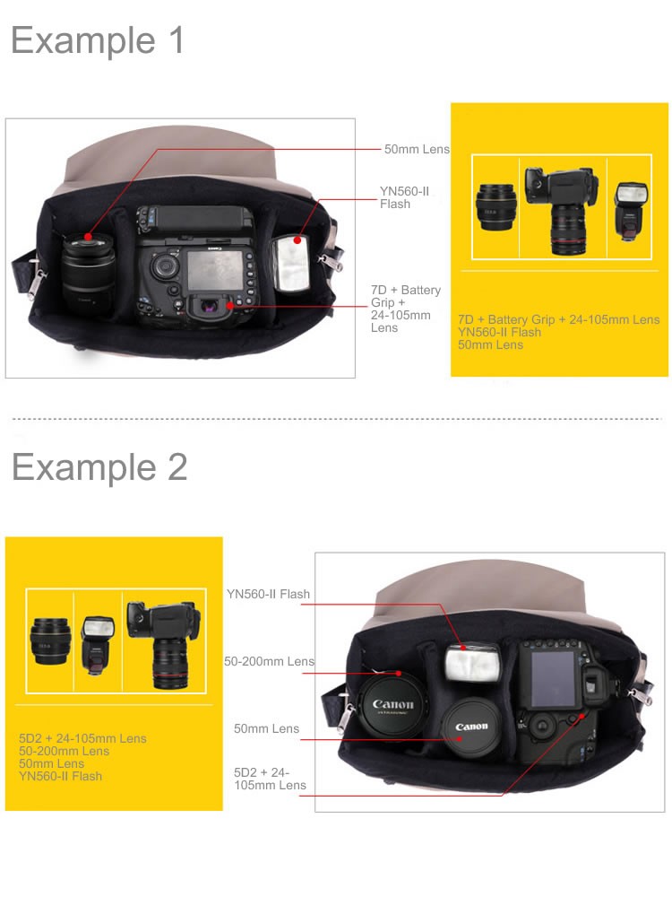 The fully adjustable main interior space can be easily arranged via Velcro fastenings to accommodate a wide variety of DSLR bodies, lenses and accessories. The bag also features several outside pockets that can be used for smaller accessories.