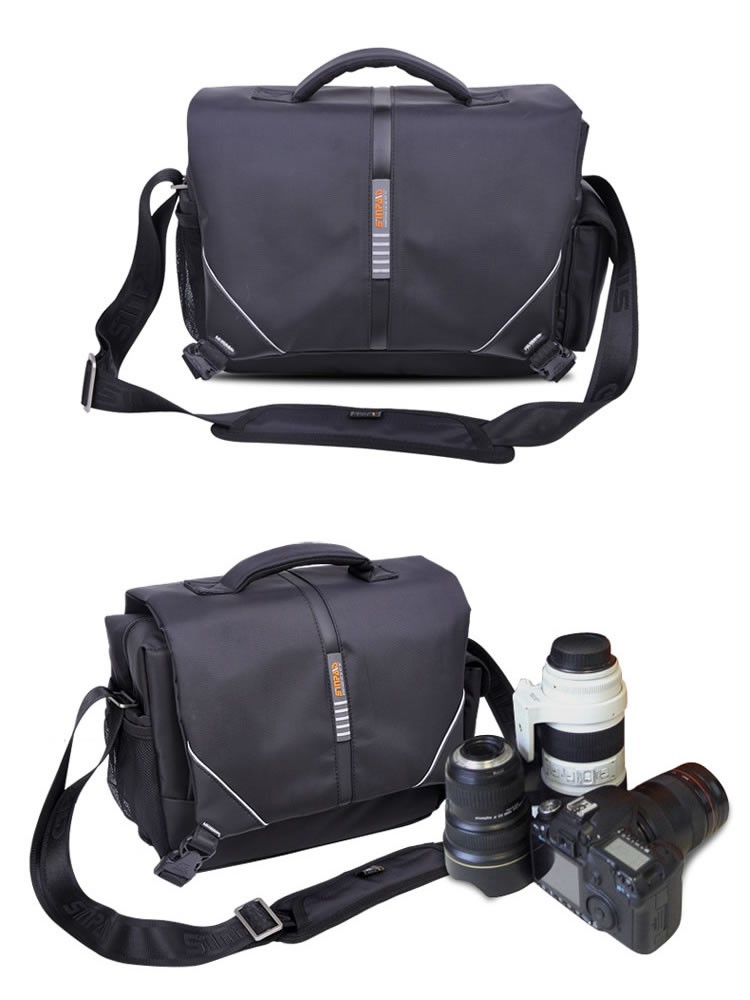 Large DSLR shoulder bag designed to hold your camera and accessories while on the move. The bag features a customisable interior which can hold and protect a large number of items for example 2 SLR camera bodies, 2 lenses, Flash, and additional smaller accessories. See the example photos for more details.