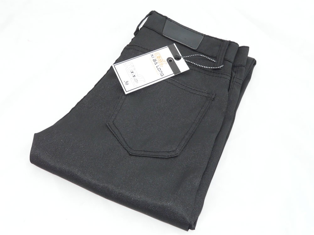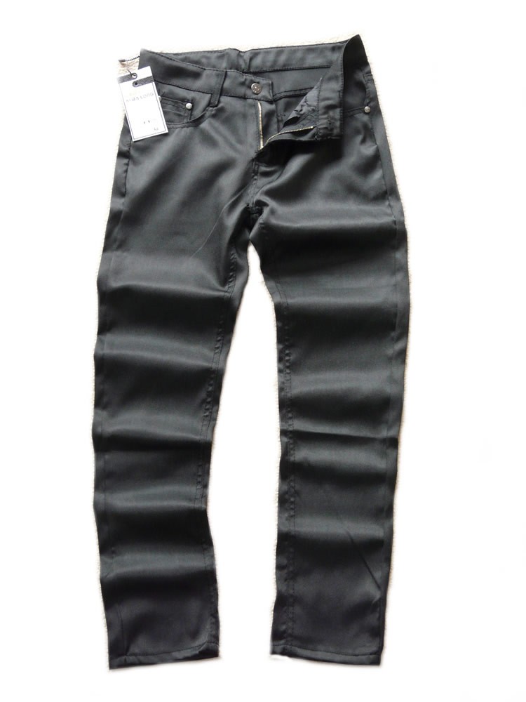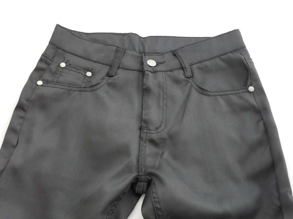 Polyester and spandex men's black jeans style stretch trousers, classic 5 pocket design, zip fly. - Reviews