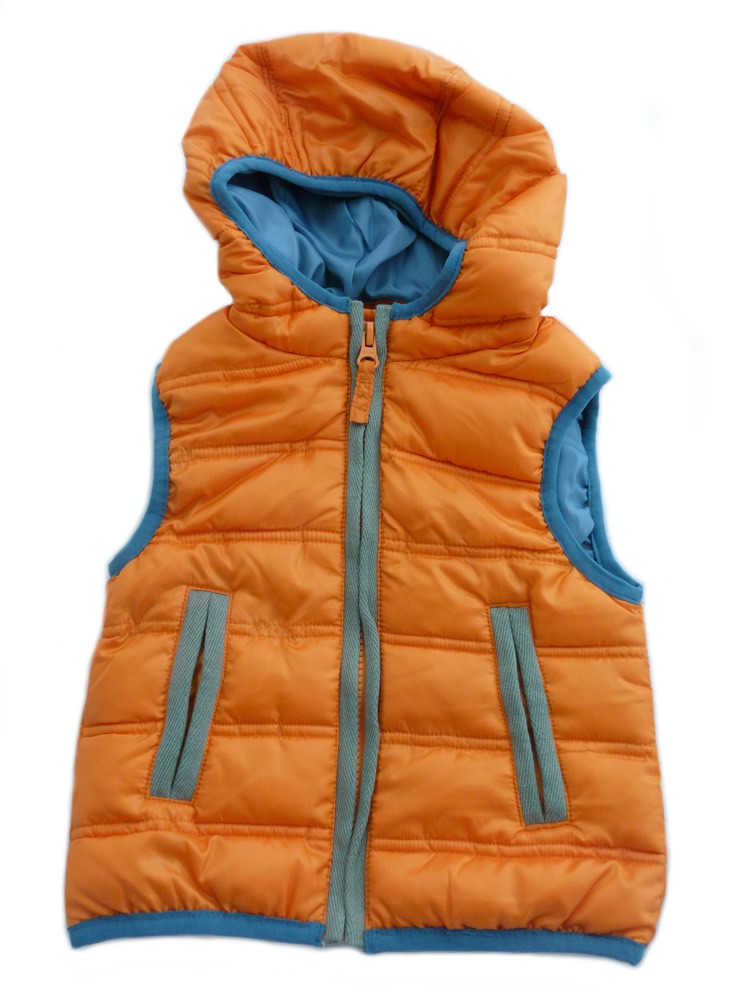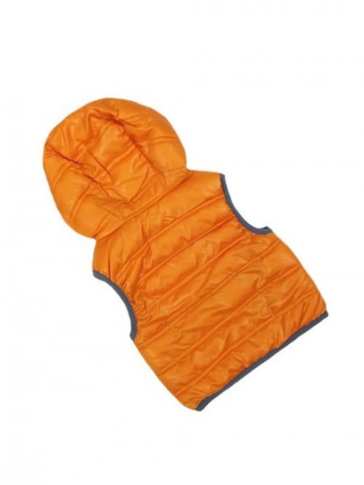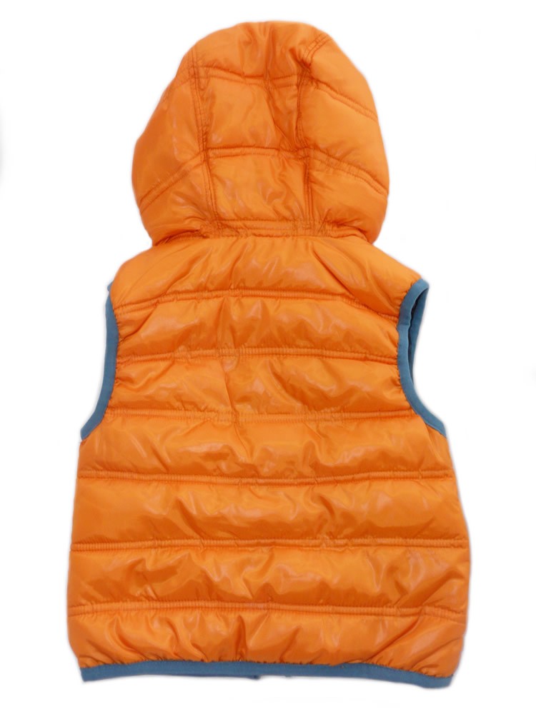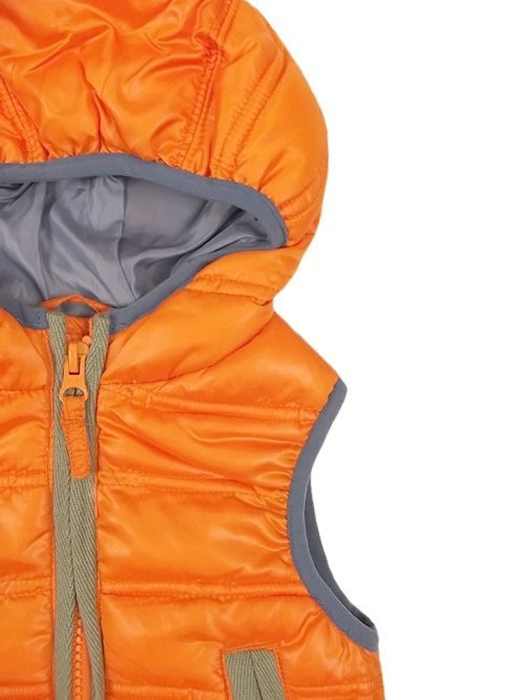 Lovely snug warm bodywarmer with hood in bright orange for stylish babies.
