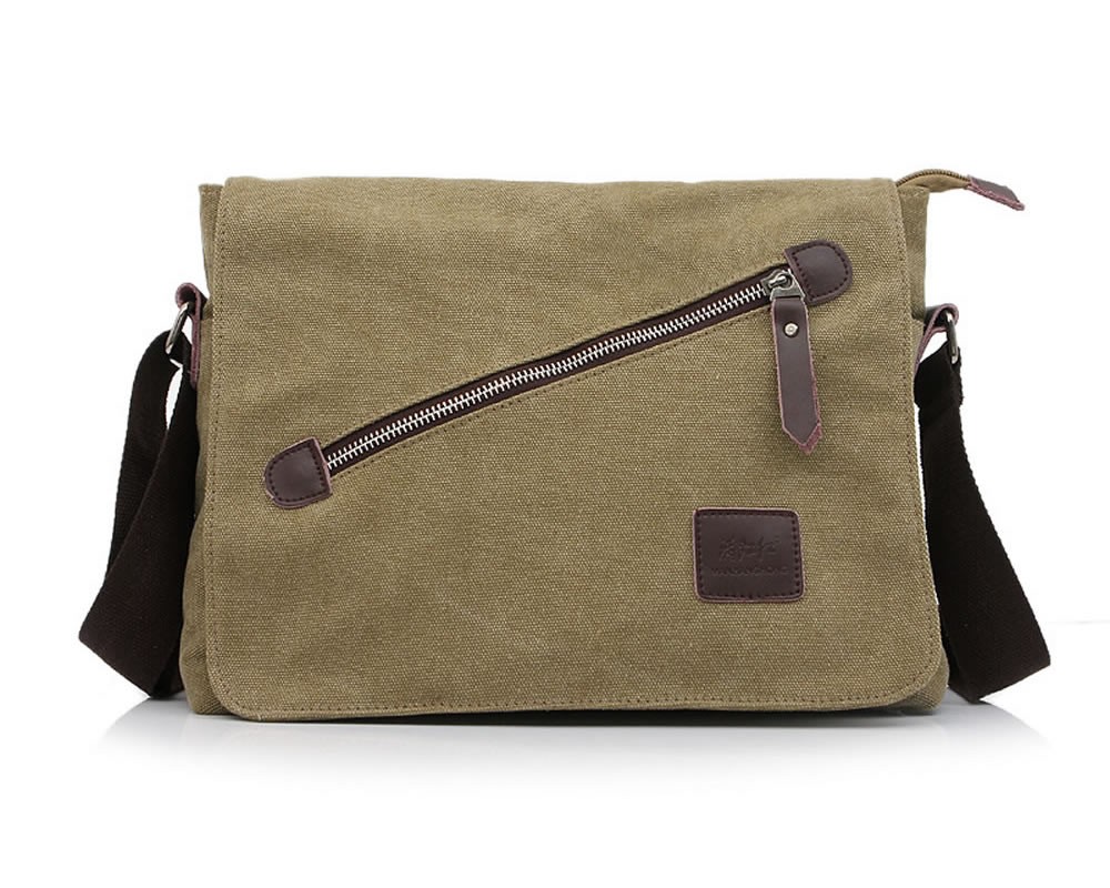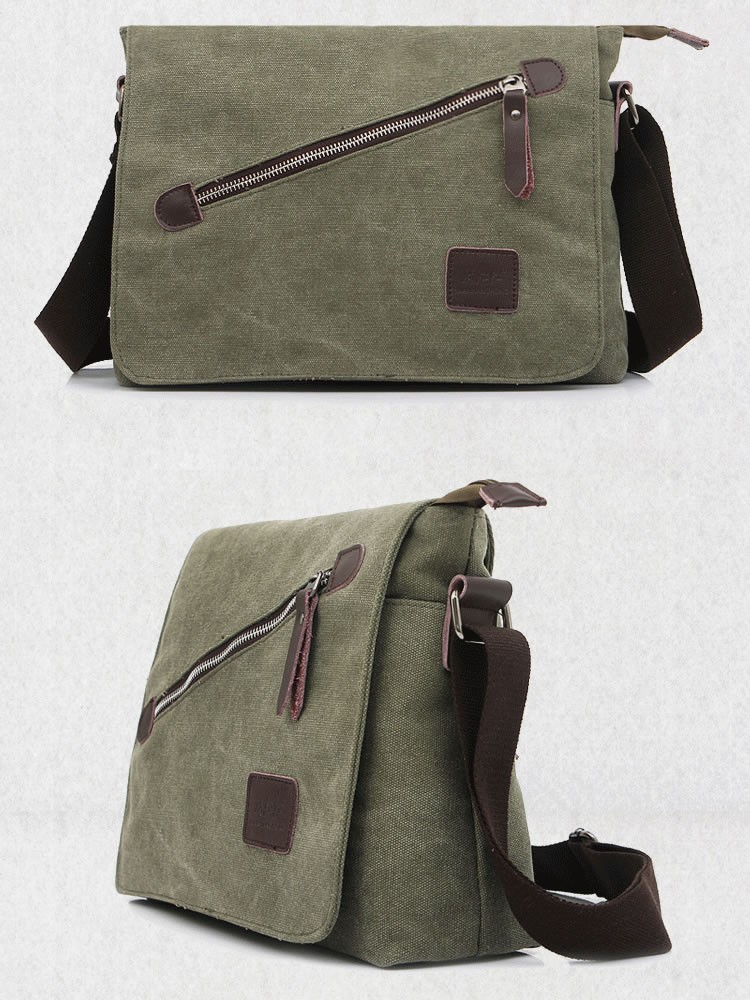 We love the diagonal zip design of this bag and we are equally impressed by the quality of the materials and manufacturing. It's made of really tough canvas and will give you years of service.