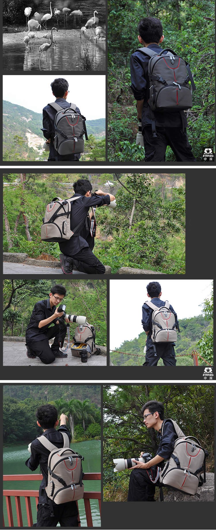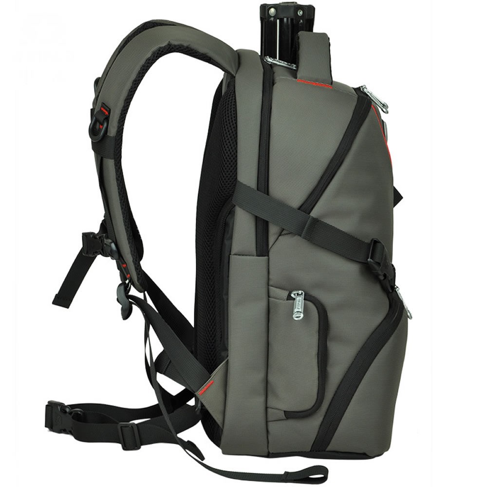 The bag also features adjustable exterior straps and fold away mesh pockets on either side to attach and carry a tripod or two.