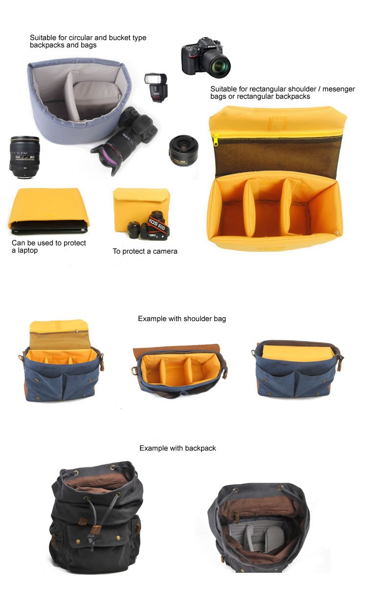 Protective camera insert, available in two sizes. Turn any bag into a camera bag.