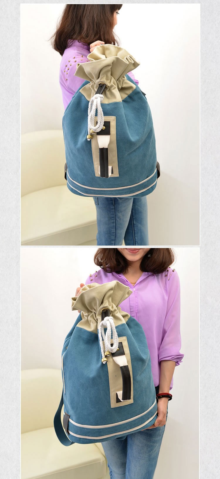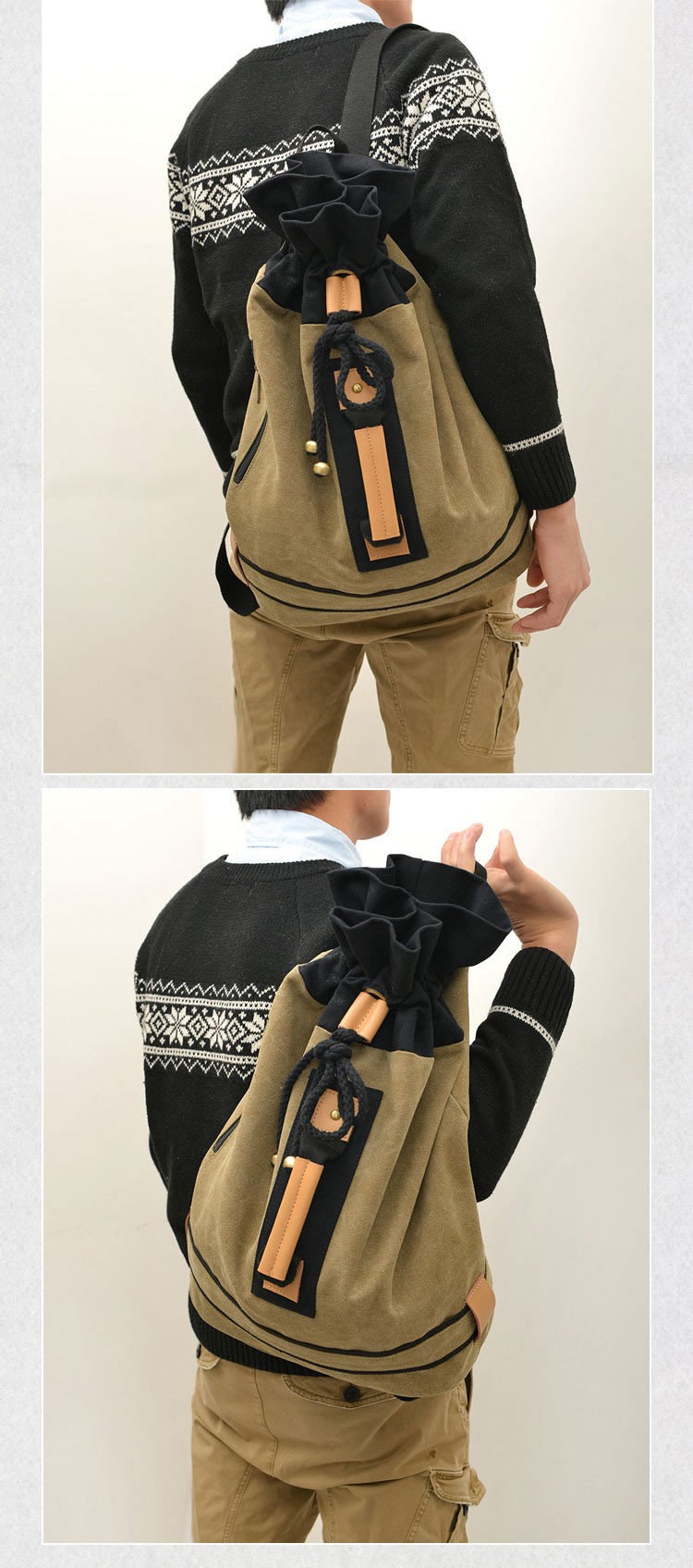 With shoulder straps and comfortable side handle so can be used as a backpack or carried like a holdall. Drawstring closure allows the top to open to it's full extent. - Reviews