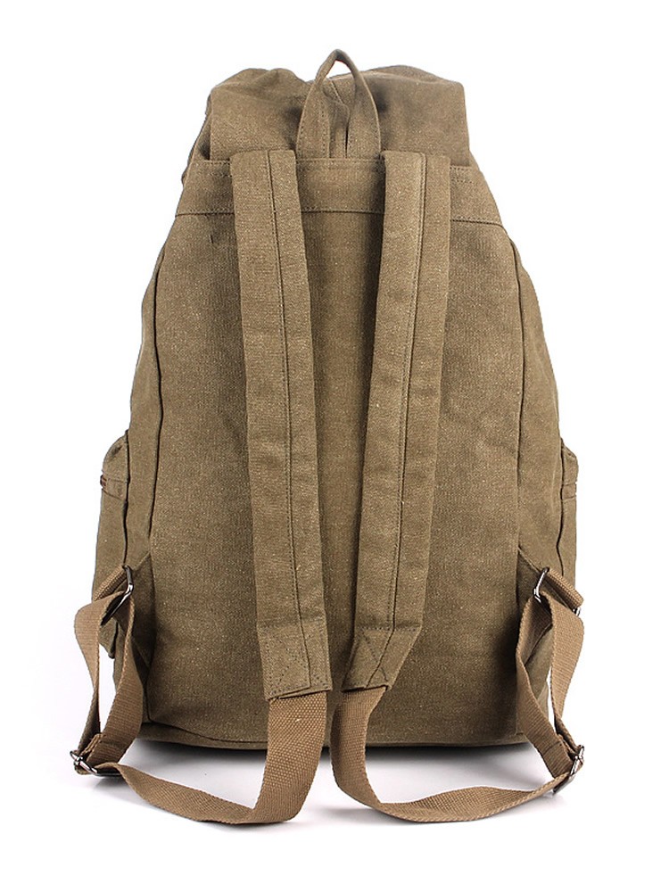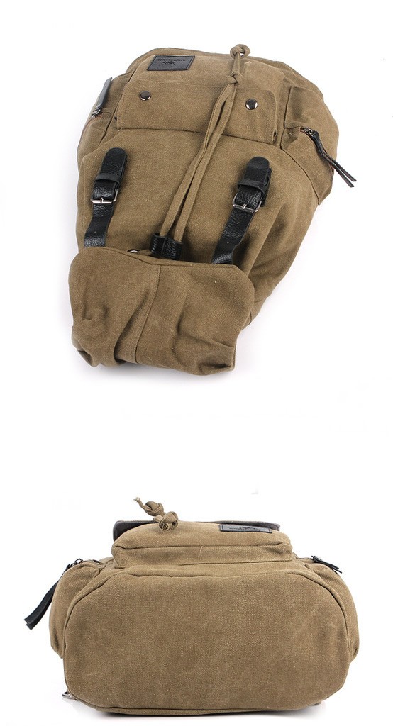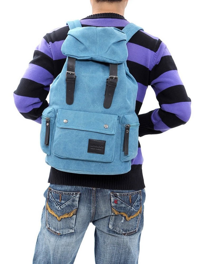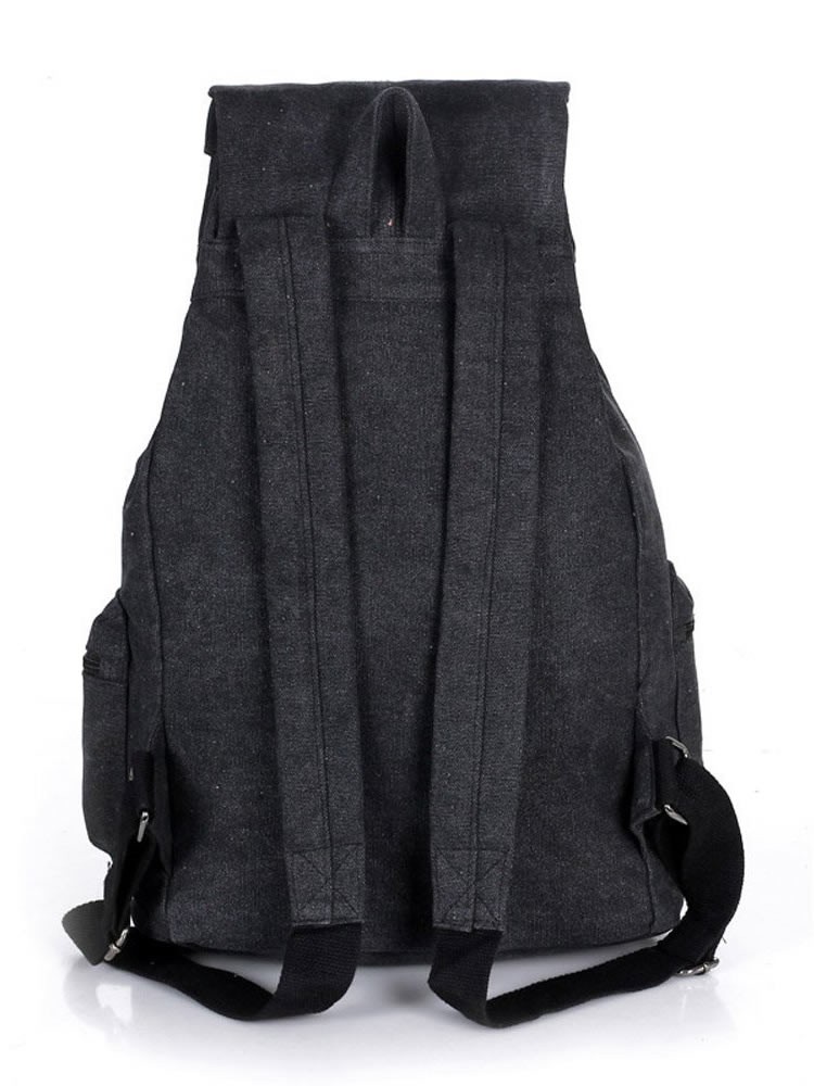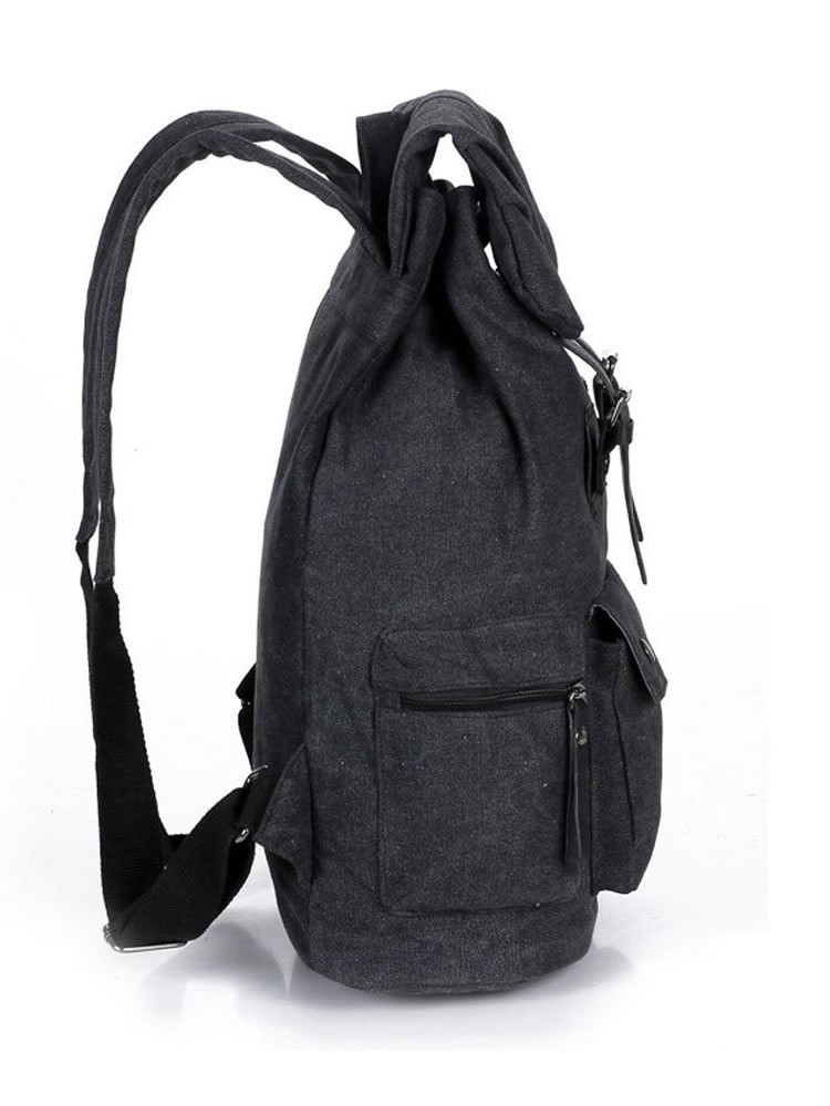 A beautifully made canvas backpack with padded shoulder straps and faux leather straps and detailing. Poppers allow easy access to the main compartment.