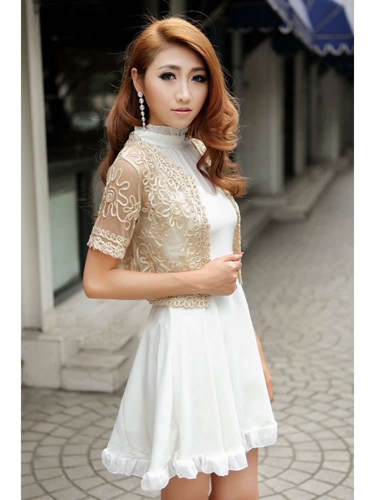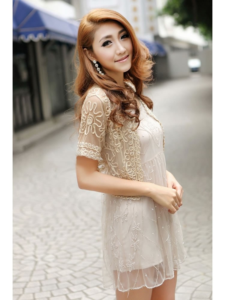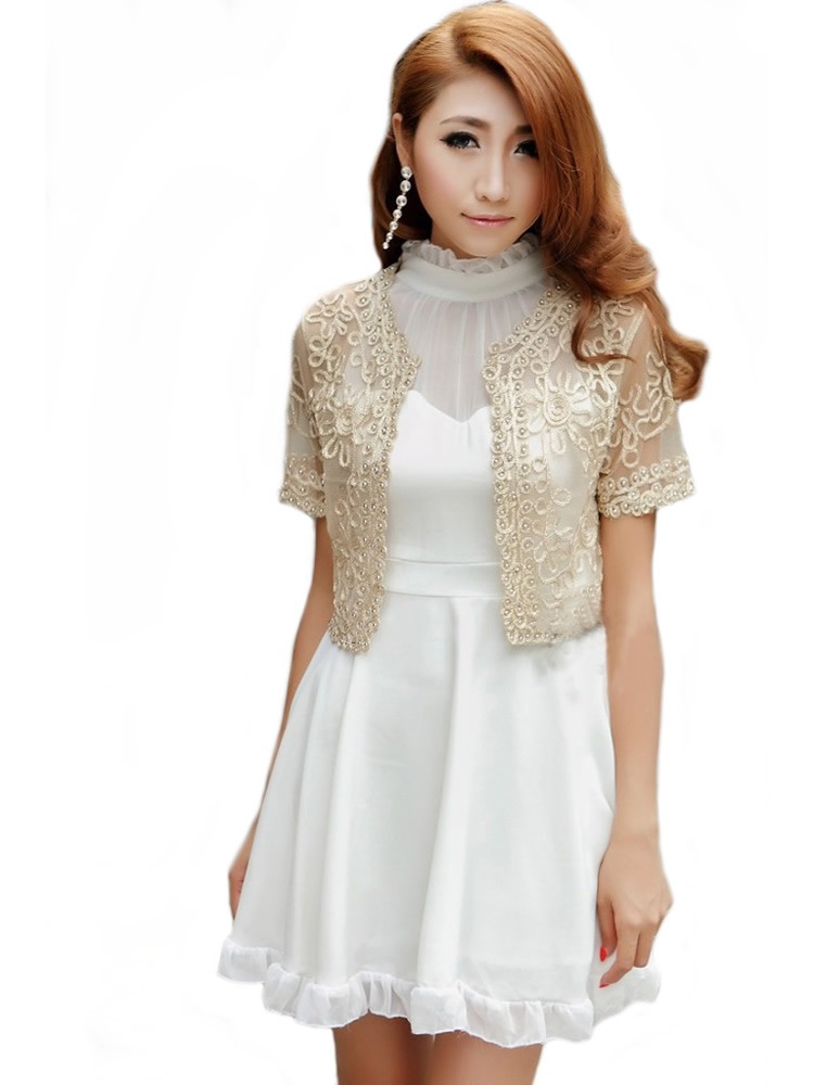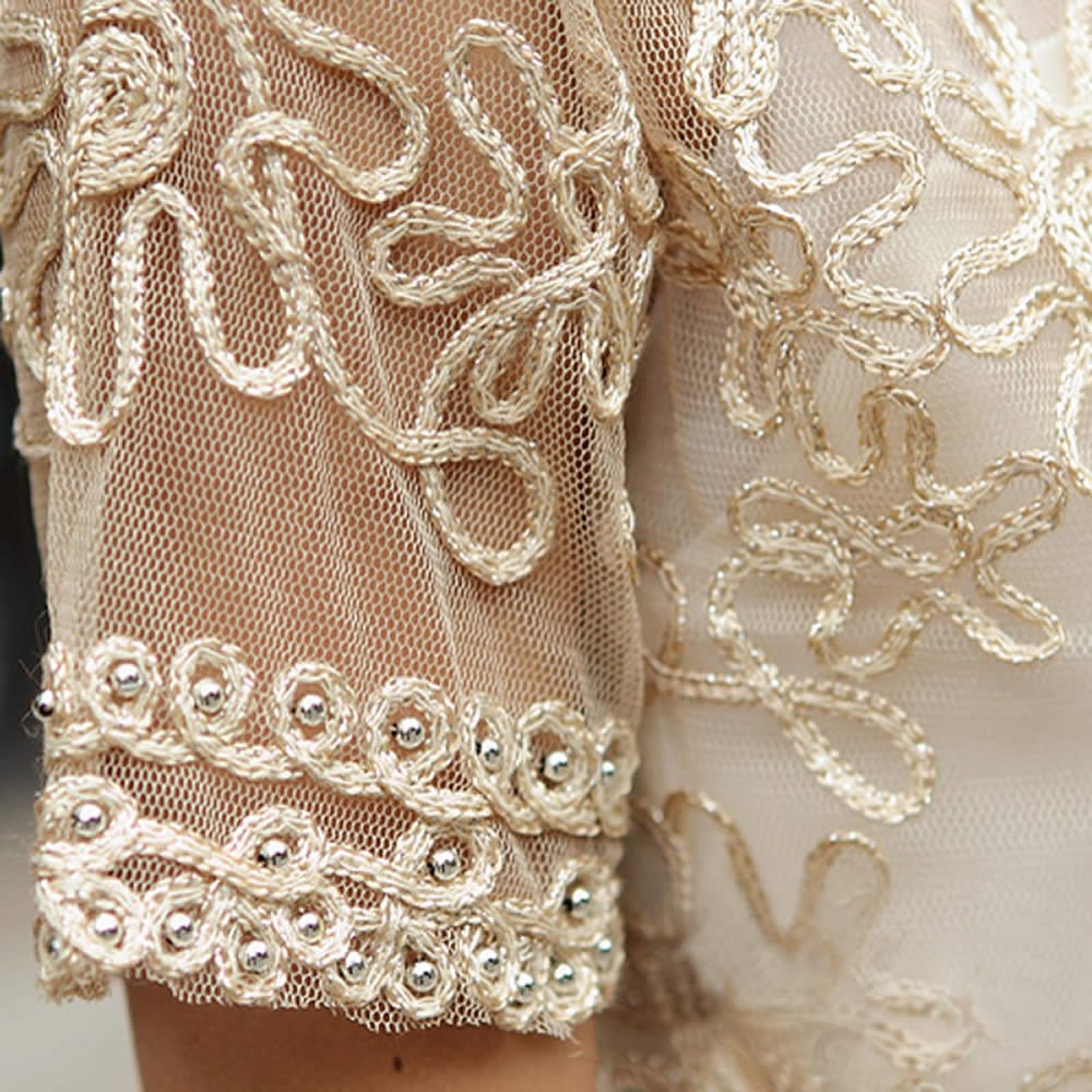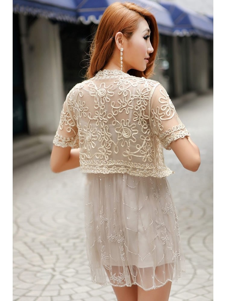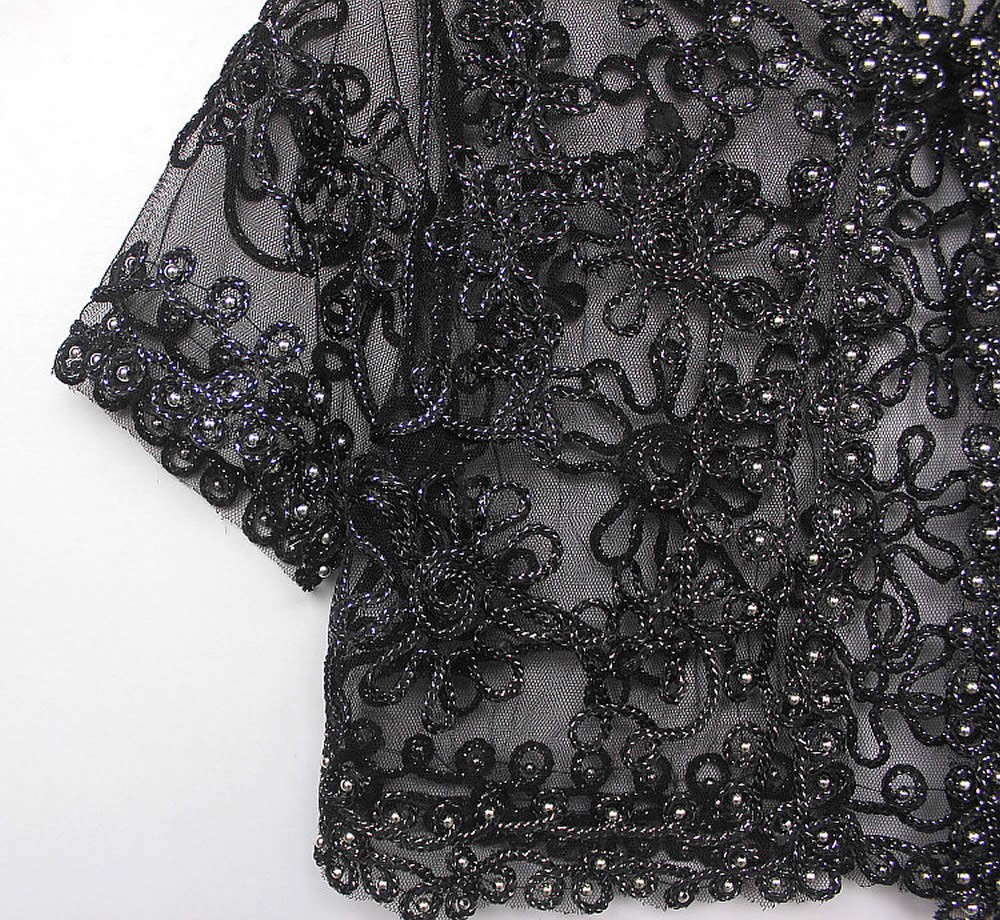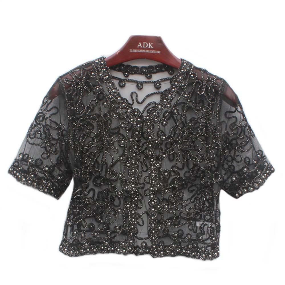 Stunning lightweight mesh embroidered cropped jacket, available in black with sliver stitching and apricot with gold stitching. Covered with hand stitched metallic beads. - Reviews